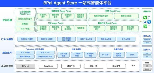 在通用智能体应用方面,标普智元打造了涵盖企业经营、金融/保险、政务、能源、制造等多领域的AgentForce,这些智能体犹如企业的数字员工,能够高效处理诸如智能客服、文档超级识别助手、销售助手、智能审核、智能风控、智能质检等各项任务。以企业财务、法务常见的单据审核、合同审核场景为例,BPai文档超级识别助手支持对PDF、Word、图片等多格式文档解析,通过AI自动分类,借助NLP技术精准提取金额、日期等关键字段,导出结构化数据,且保障隐私安全。比如自动提取发票“金额”“税号”等字段并与采购系统订单号匹配,对异常或重复发票标红预警,使财务审核效率提升70%,错误率降低90%;提取合同“违约责任”等关键条款,与标准模板比对差异,自动生成风险摘要报告,帮助法务合同审查时间从72小时缩短至2小时,还可规避因条款遗漏导致的潜在法律纠纷。